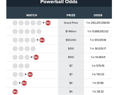 The odds of winning the Powerball jackpot are 1 in 292 million. However, there are also smaller prizes available for matching fewer numbers.