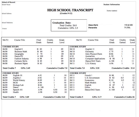 A transcript is an official document that records your academic history at a high school. It includes information such as: