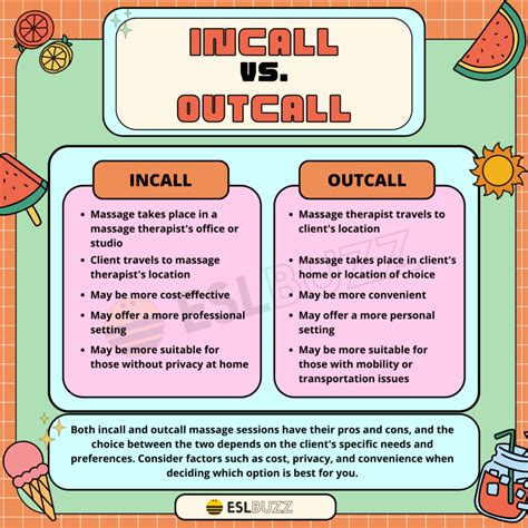 • Both have their pros and cons. Incalls are typically cheaper, while outcalls offer more privacy and convenience.