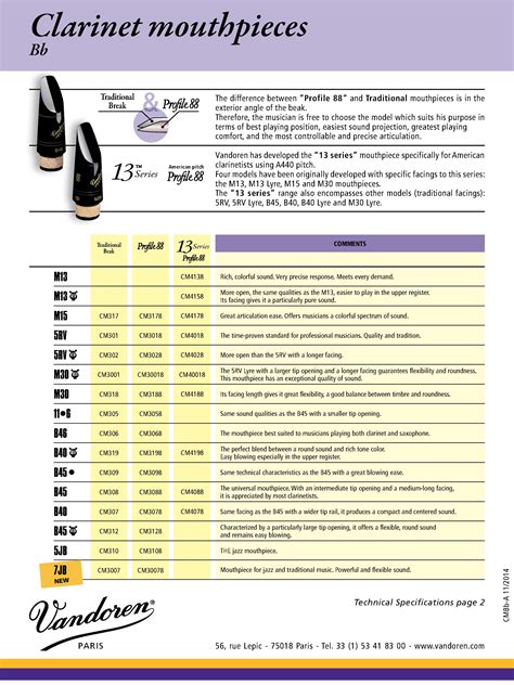 The Vandoren BD line offers excellent intonation, a rich and balanced sound, durability, versatility for a wide range of musical styles, and a comfortable playing experience.