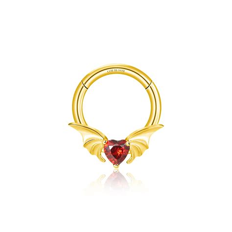 A red daith titanium heart is a type of body jewelry that is worn in the daith piercing, located in the innermost cartilage fold of the ear. It is typically made from titanium, a lightweight and hypoallergenic metal, and features a heart-shaped design in a vibrant red color.